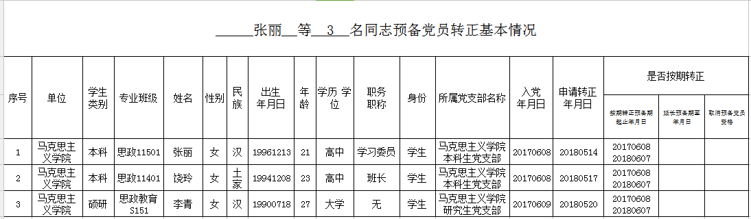 附:张丽等 3名同志预备党员转正基本情况