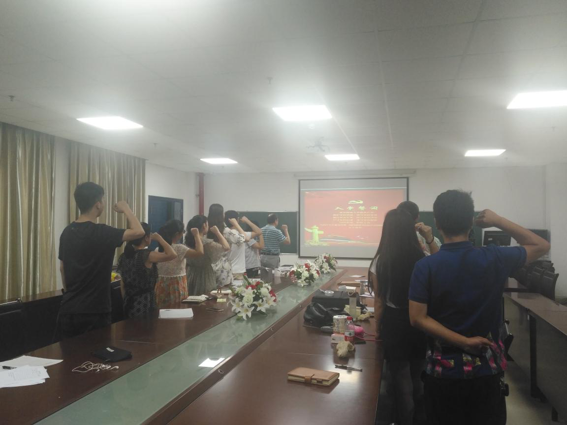 yl23455永利于6月21日组织开展了以“不忘初心 牢记使命”为主题的“支部主题党日”暨纪念建党97周年活动。活动的议程共有五项:一是重温入党誓词;二是集体诵读党章第三章;三是缴纳6月党费;四是各支部书记讲党课;五是学习讨论并开展批评与自我批评。