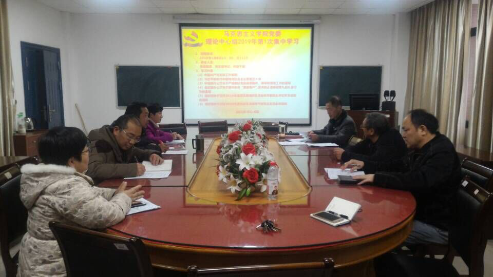 2019年1月8日,yl23455永利党委理论学习中心组在文科楼1125室组织了2019年首次集中学习。党委委员、各支部书记、科级以上干部参加了理论中心组学习,会议由党总支书记吴智勇主持。