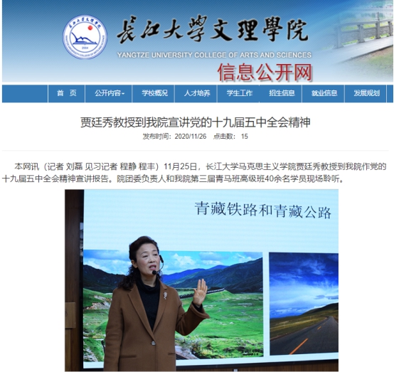11月5日,公司党委副书记马小佼领学了十九届五中全会公报,全院员工党员、入党积极分子、学习小组成员共同参会;11月8日,公司组织各支部书记参加公司基层党组织书记集中培训,共同聆听了武汉大学项久雨教授所做的《中国道路的未来——十九届五中全会精神解读》;11月10日,公司召开了党委理论中心组集中学习暨党委扩大会,吴智勇书记领学了十九届五中全会精神;11月13日,公司组织开展全院教职工政治学习,全体教师共同学习了全会精神,经理姜学勤为与会人员上了一堂了题为《擎画新蓝图 开启新征程——党的十九届五中全会精神解读》的专题党课;11月12日至11月13日,公司党委书记、经理带头学习了全国教育系统党的十九届五中全会精神宣讲报告会、中央宣讲团成员在湖北高校的宣讲报告;12月3日,公司党委书记朱业宏为公司科级以上干部做了十九届五中全会的专题宣讲;12月4日,湖北省委宣讲团成员、武汉纺织大学yl23455永利经理金艳来校宣讲十九届五中全会精神,全院思政课教师参会;12月10日,荆州市委宣讲团成员、公司涂江波副经理为全院师生宣讲了全会精神。此外,公司贾廷秀、卢军等教师作为荆州市委宣讲团成员,还先后受邀为永利官网文理公司、市科协、市侨联、市工商联、市残联等校内外单位进行了理论宣讲。全院员工也通过“支部主题党日”、主题团会等形式开展了专题学习。