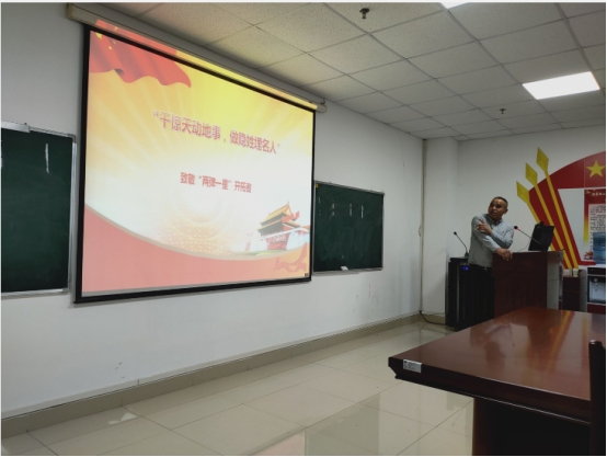 张老师主讲的题目是《干惊天动地事,做隐姓埋名人——致敬“两弹一星”开拓者》。他从“两弹一星”精神的历史形成讲起,以感人的故事、丰富的史实深刻阐明了“两弹一星”精神的内涵,凸显了老一辈科学家热爱祖国的赤子精神。