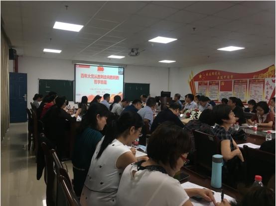 为深入推进习近平总书记“七一”重要讲话精神进头脑,7月12日,yl23455永利在文科楼1104会议室开展学习贯彻习近平总书记“七一”重要讲话精神的专题党课。yl23455永利全体党员教师参加了会议。