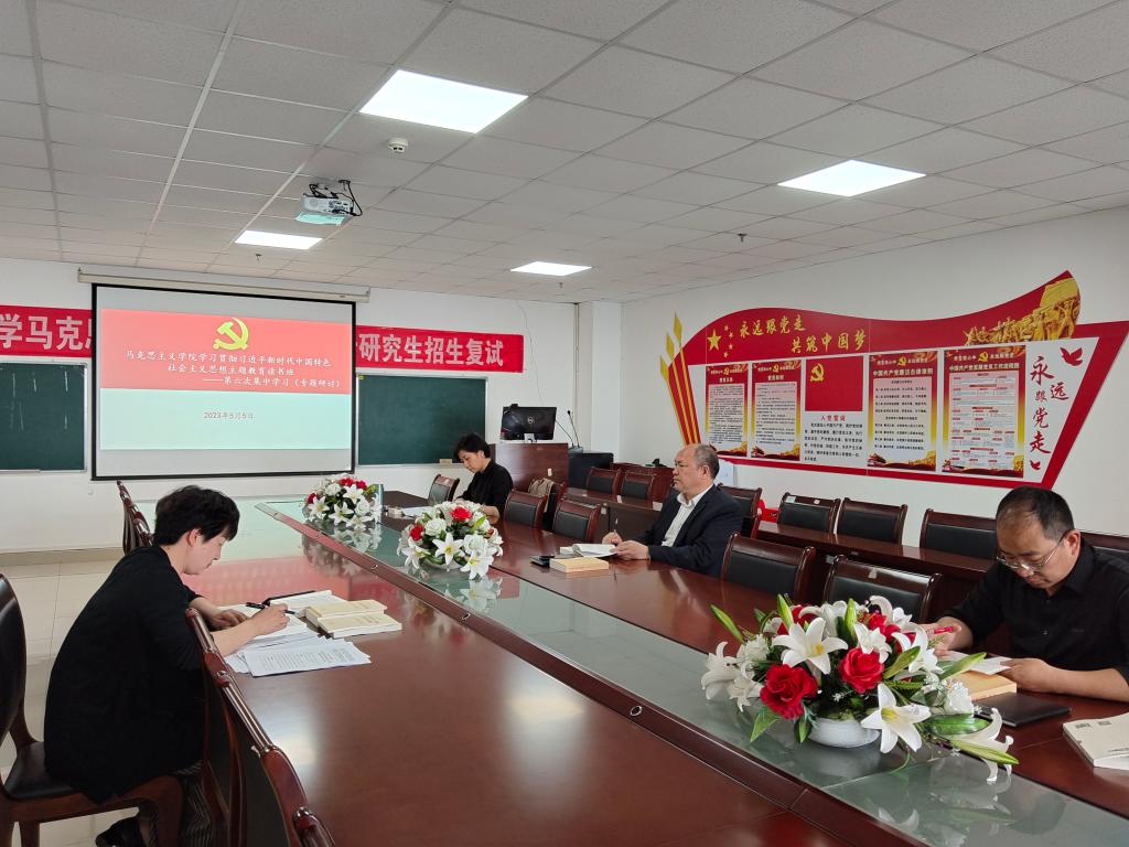 5月5日晚,yl23455永利学习贯彻习近平新时代中国特色社会主义思想主题教育读书班在文科楼1104室开展第六次集体学习。深入学习了《习近平著作选读》第一卷“加强和改进党的群团工作”等12个篇目内容,逐字逐句研读了《习近平新时代中国特色社会主义思想专题摘编》中有关“实施科教兴国战略,强化现代化人才支撑”的论述。院领导姜学勤、刘小燕等聚焦“三位一体”推进高水平大学建设作了交流发言。