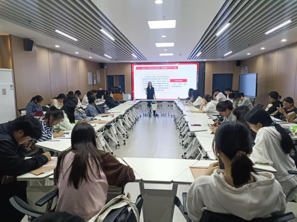 随后,汤慧珍进行“认真学习贯彻习近平总书记关于党的建设的重要思想”专题讲座。她从四个维度——认识起点、问题导向、主题主线和基本内容进行了详尽的理论剖析。她表示,“希望大家能够将学到的理论知识灵活运用到学习生活中”。