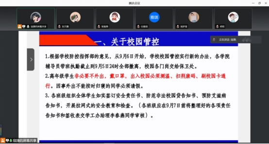 会上,各班班长主要从校园管控、新冠疫苗注射情况、反诈骗教育、疫情防控、线下教学等五方面强调了相关事项,督促员工每日自觉监测体温,如实填写体温自测表,并对高年级员工出入校园等管理事项、预防电信诈骗、线下教学课堂纪律和安全等相关规定提出了新要求。