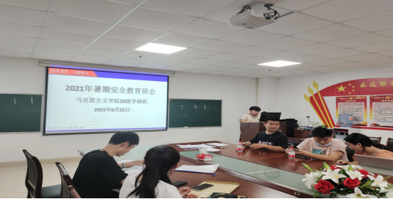 6月25日,2020级学硕班级于文科大楼1104开展暑期安全教育班会。班长李天赐对公司暑期安全教育工作进行简要介绍,并组织班级全体同学签署暑假安全责任告知书。