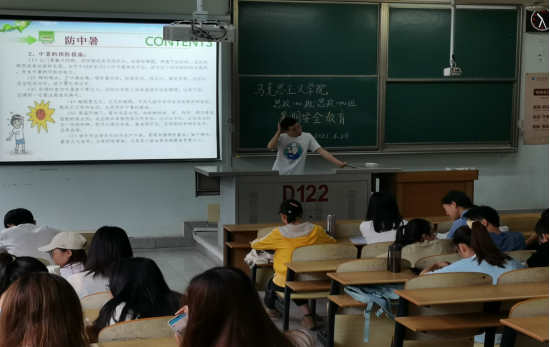 6月24日,思政12002班于13教D126开展暑期安全教育大会。会上,针对公司下发的暑期安全提示和有关员工离校或滞留公司的相关请假手续,班长张圣文作了详细宣讲,提醒同学们要注意暑期安全。