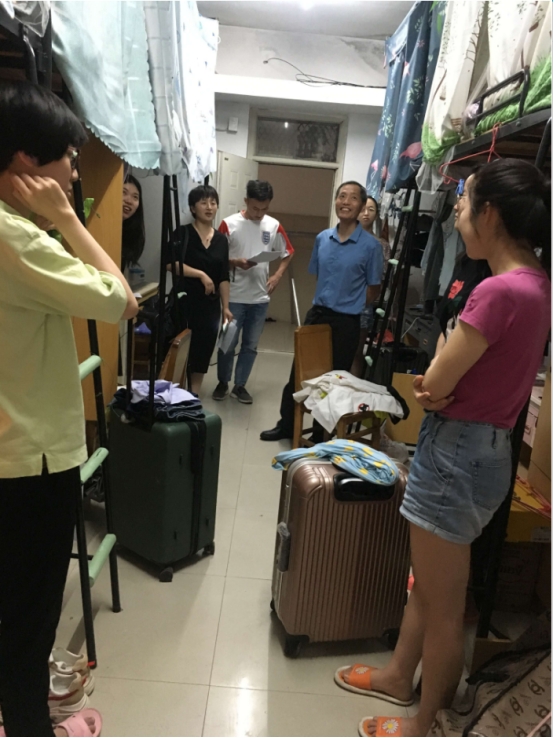 2021年6月18日上午,在2021届毕业生离校之际,为进一步关心、关爱毕业生,确保毕业生安全、温馨离校,学院党委书记吴智勇、副书记马小佼、副经理黄晓云以及辅导员张云雾、李敏深入员工宿舍,欢送毕业生。