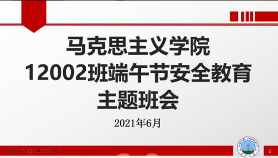 6月9日晚,思政12002班于腾讯会议于召开主题班会。班长张圣文从防溺水、运动安全教育、防电信诈骗三方面展开安全教育主题班会,并对班级内留、离校员工人数作统计。此外,面对即将到来的英语四级和期末考试,他将舞弊后果告知同学们,告诫大家要秉承诚信精神、切勿作弊,并于班群下发相关文件指导同学们填写相关表格信息。