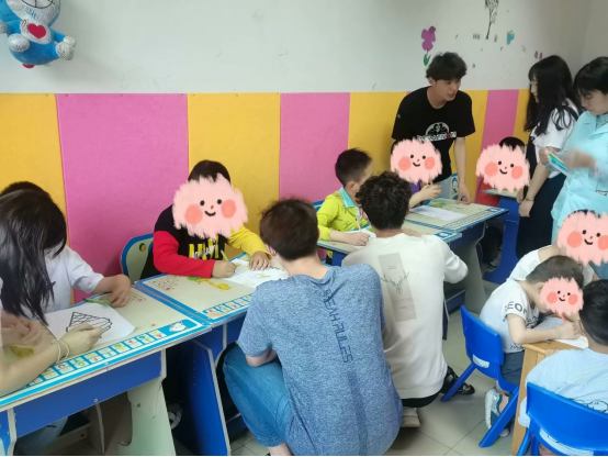 下午两点整,志愿者们在南苑19A寝室门口集合完毕,并在安全责任书上庄重地签上了自己的姓名。到达活动地点后,按照疫情防控的相关要求,志愿者们在几分钟的等待和测温登记后进入了康复中心。随后,志愿者们被分为五组来到了五个不同的班级,并与孩子们一对一进行玩耍,耐心地陪伴孩子们。志愿者们配合老师与孩子们一起玩唱歌做动作和听歌识动物的游戏。在此过程中志愿者们始终耐心地陪伴在孩子们身边,直到把孩子送回家长身边。