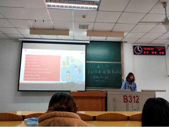 4月27日,第二学士学位本科班级、2018级研究生相继于文科大楼1104组织召开运动安全教育班会, 副书记马小佼参与了班会,除提醒假期外出的同学注意出行安全外,还提醒假期留校员工遵守公司相关规定,按时就寝、注意防火防盗。