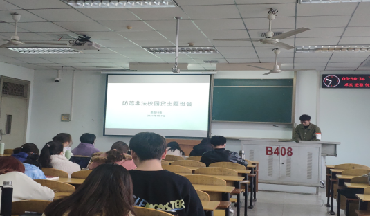 4月7日至4月9日,各班级有序开展防范非法校园贷主题班会。各班级在QQ群分享防范非法校园贷的相关知识和视频,组织同学集中学习和观看,并在进行交流分享。为了强化同学们的风险意识,各班安全委员组织开展了围绕抵制不良网贷、共建和谐校园的主题班会,由班委主持发言,并向同学们讲述科学面对校园贷、解决校园贷的方法途径,并同时提醒同学们要学会用法律的武器保护自己。