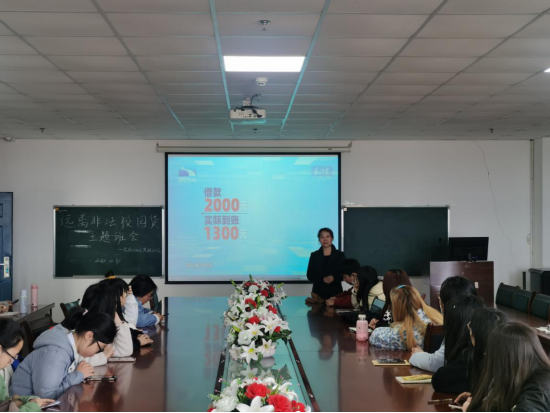 11月30日下午,公司组织2020级全体新生在文科楼1104室集中观看了“远离非法校园贷”专题讲座。辅导员张云雾老师结合讲座内容从充分认识非法校园贷的巨大危害、提高识别和防范校园贷的能力、养成文明理性消费习惯等三个方面对新生做了安全提示。思政12002班李光钰同学说,通过老师的讲解以及网络视频的学习,我知道了校园贷产生的原因及其严重危害。校园贷不仅会危害我们的学习生活,还会拖累我们的亲人,甚至有些家庭因为校园贷弄的家破人亡。作为当代老员工的我们,要提高思想觉悟,遵纪守法、合理消费,切莫陷入校园贷的深渊之中。当我们遇到校园贷问题时,应第一时间和老师沟通和报警求助。同时,我们也应积极监督、举报社会和校园中非法校园贷的现象,为社会的和谐作出贡献!